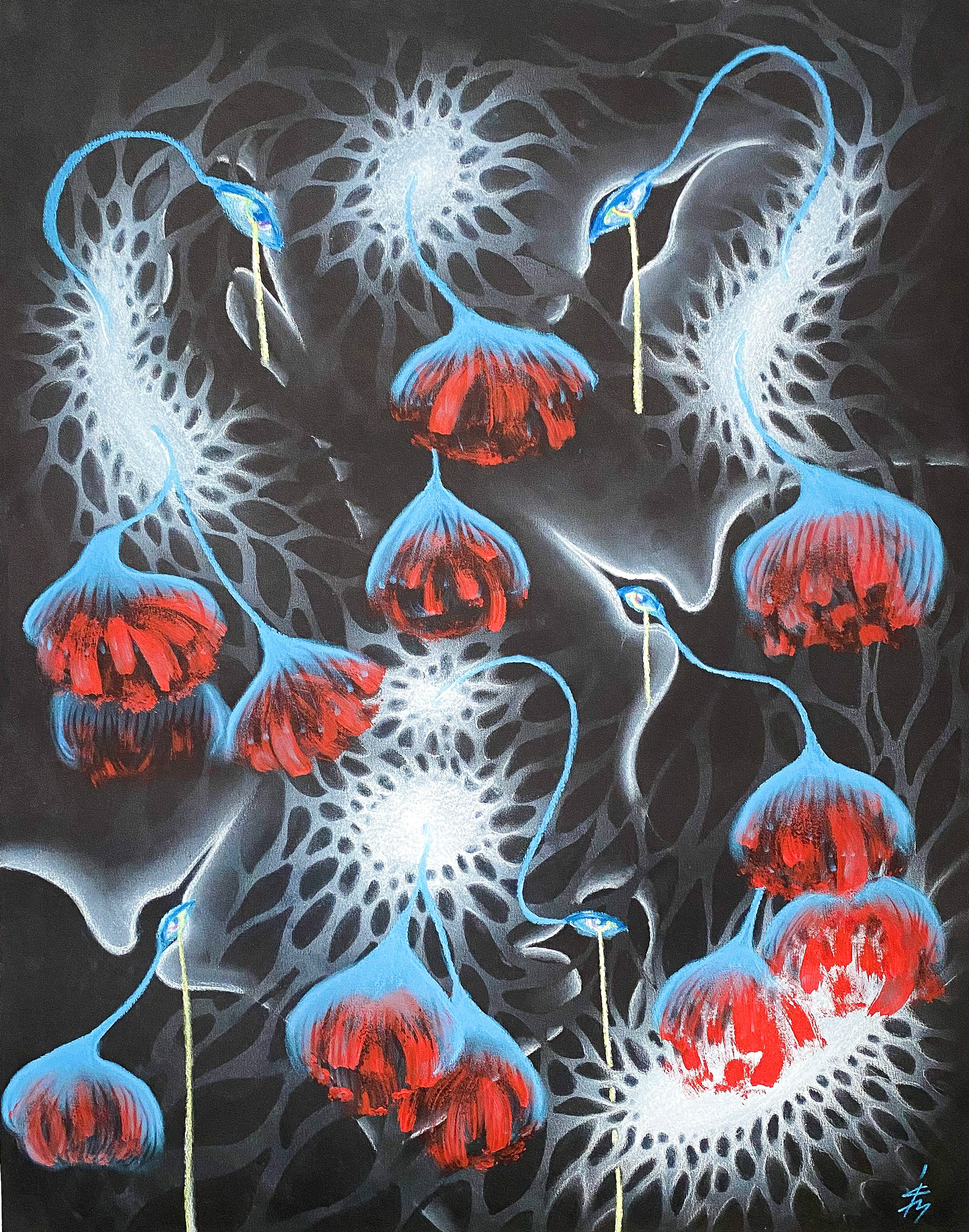 Materials: soft pastel and acrylic on paper. Dimensions: 65 x 50 cm